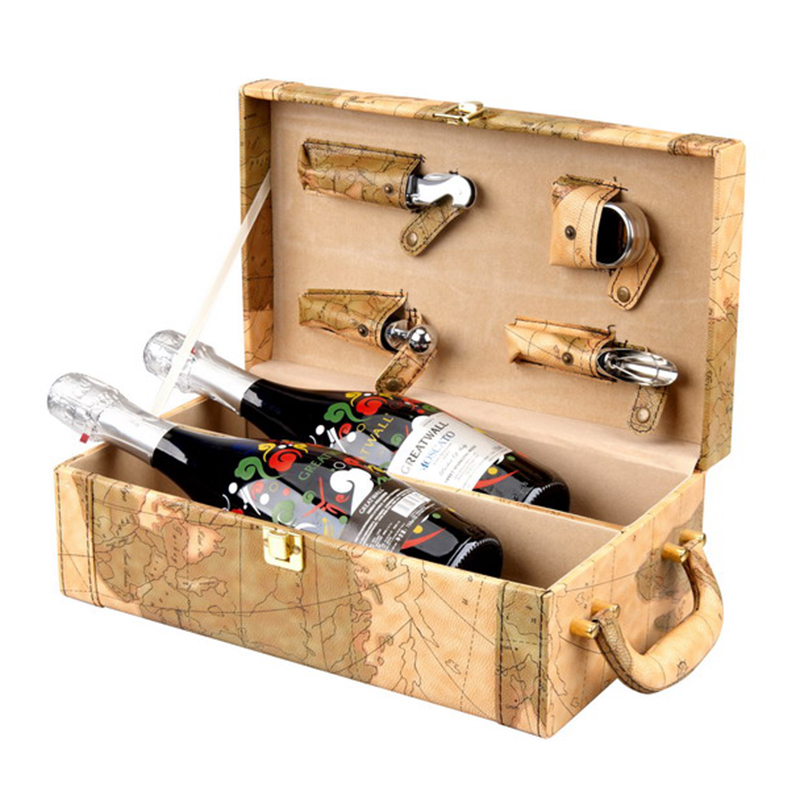可裝2瓶酒,4件葡萄酒配件PU酒盒